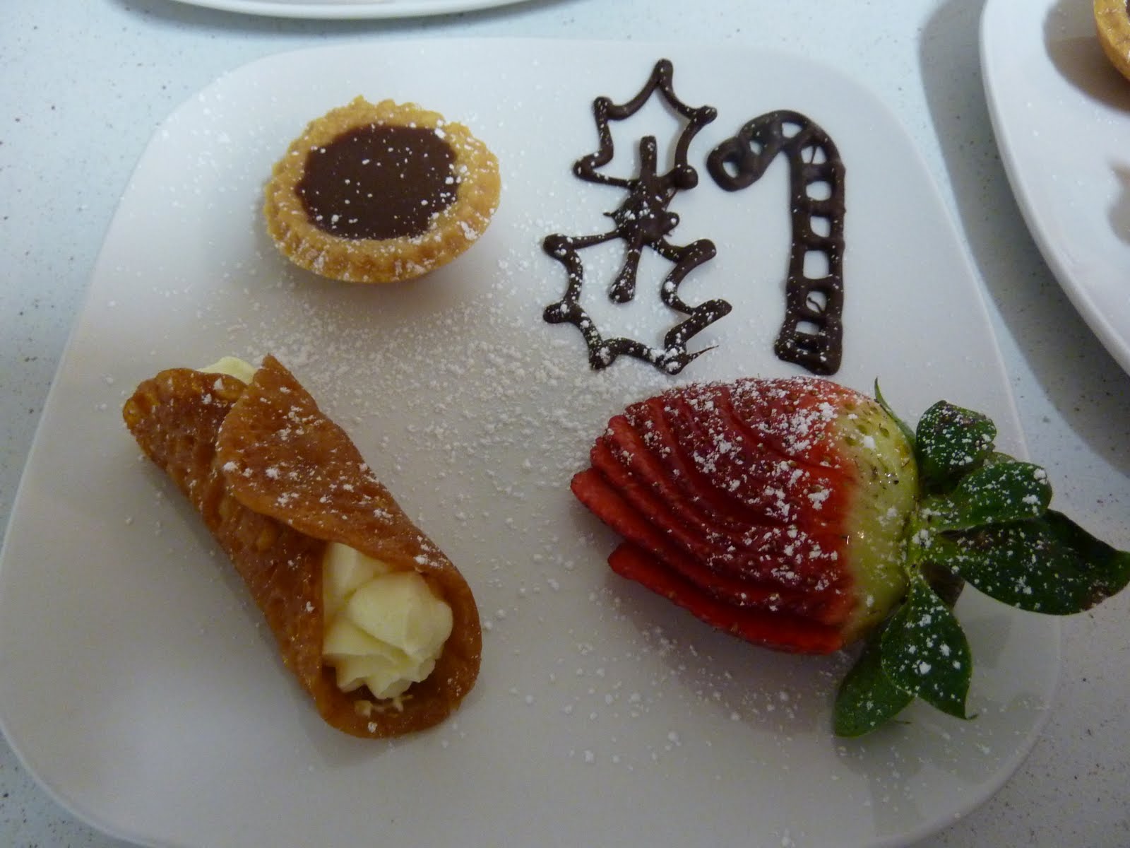And then I got super carried away for dessert – ganache tarts (from Masterchef) and the brandy snaps with triple sec creme and shapes made out of chocolate, and a strawberry is always nice.