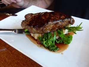 And GG, well if there’s a steak on the menu, 9 times out of 10 it will be his choice. He went with the 250g Porterhouse served on kalkenen potato mash with buttered broccolini with a red wine and field mushroom jus.