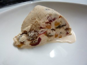 My mum’s speciality come Christmas time is an ice cream plum pudding. A delicious combination of dried fruit – sultanas, currents, raisins, cherries, apricots and slivered almonds, soaked in the spicy goodness of Norfolk Punch then stirred through vanilla ice cream – usually Peters, because well it’s a tremendously creamy and fabulous ice cream brand.