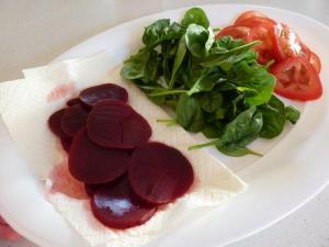 Prepare salad for burgers – I like beetroot, english spinach and tomato