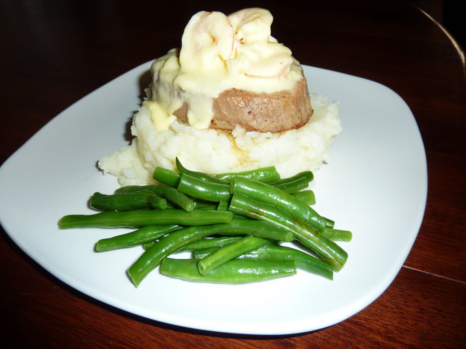 Recently I’d been around my parent’s place and my mum had told me about the night that my brother and his girlfriend had been around for dinner and they’d all worked on surf and turf together. Amy had the idea to replicate a recipe they do at her work, so they threw butter into a pan and gently simmered it. Then next added some diced garlic and softened it in the butter. Once the garlic was soft they added a generous pour of whipping cream. They warmed this tthrough and into this mix added some raw peeled prawns. The prawns then cooked through fairly quickly in the creamy garlic sauce. Mum mentioned also that if you prefer the sauce a little thicker just add some cornflour (premixed in cold water). The prawns don’t take too long to cook through and you basically then just pour this sauce on top of your steak – cooked to your likely.