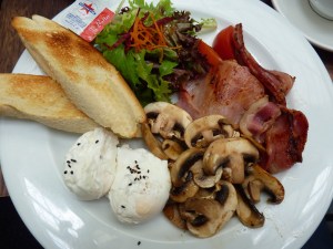 So we sipped our tea while we waited for our breakfast which was a bit of a wait, but we were in no rush so it wasn’t a bother. So worth the wait!! Fresh baguette, beautifully poached eggs, tasty mushrooms, decent serve of bacon and a salad on the side. I had thought the inclusion of the salad was a little different. Was nice and refreshing and the perfect end to the meal after all that bacon. This was easily my favourite breakfast while we were in Sydney and I only wished I knew about it on the first day so I could have gone there every day! Brilliant service, great food – excellent value!