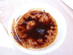 Once you’ve stirred for this long, get a nice deep baking dish and pour the mixture into your ramekins and put hot water up to about half way up the ramekins. I found that with the ramekins I had that I actually had to make a double recipe to fill them up to near the top. So yes a stack of eggs and a massive amount of cream – but you can’t scrimp on dessert! So they go into the oven for 35-40 minutes.