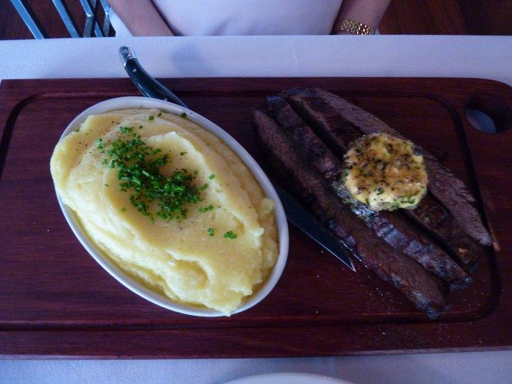 And the meals were tasty. A very generous serve of mashed potatoes came out with Helen’s skirt steak. She mentioned that initially she had thought that the steak looked ‘small’, but suspected that this was likely because it was came out sliced up – it definitely wasn’t small! She also was pleased that despite ordering it well done, that it wasn’t chewy, the Cafe de Paris sauce that she’d gone with was a buttery delight – and was pleased with her decision to go with vegies on the side – a tasty addition – to what was a well rounded meal.