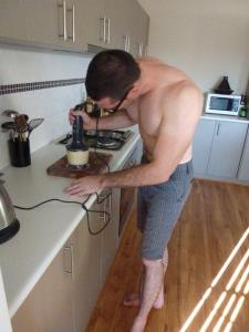 Time for the filling! And this is when I got home and discovered my bare shirted dessert chef hard at work.