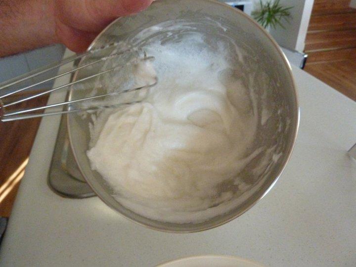 The egg whites then need to be beaten until soft peaks form.