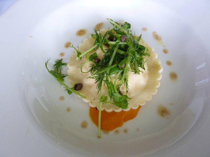 As we sat happily munching away on our rolls, the entrees were served – a creation from Heyder and Shears and also Graham Arthur from Il Lido. There were two being served. Either an Atlantic Salmon ravioli, roast carrot puree and snow pea tendrill salad with baby capers. I didn’t have this one, but there was definitely some approving mmmm sounds coming from those around me who did.