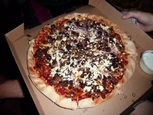 Lucky for me though I went to a Hens the other night and we were cruising down the river and as I walked on board I noticed a familar name on a few pizza boxes on board – Pink Pepper! Now was the time for me to try them!