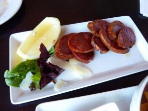 Our tapas then arrived and the first round included tempura prawns, which came with a coriander aioli style dressing. The prawns were quite nice, a decent size and a nice flavour. There was also some chorizo, which I enjoyed, a good amount of spice to it and not crazy oily. There was also some salt and pepper squid, another well cooked dish, and then there was some battered fish, would assume it was whiting filets, which was served with a harissa dip. They were all nice dishes, probably just too many fried options. Had hoped that perhaps the waitress would have mixed it up a bit more, but I suppose that’s what you get when you let someone else do the choosing.