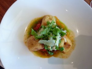 In the end there were 4 different selections made for entrees, before 3 of us went for the duck for mains and GG’s mum decided to try the chicken. First off though, the entrees. They all looked amazing, a lot of attention had been paid to presentation. GG went for Panfried, goats cheese gnocchi with tomato sugo ($24)which I was lucky enough to have a bite of and it was delicious.