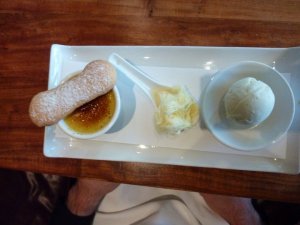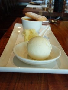 GG was pleased with his Saffron and honey creme brulee with its pretty piece of tuille on top and vanilla bean ice cream on the side…