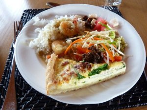 And it was an impressive spread! Basically lunch every day was a bit of a buffet – a range of salads, two hot mains and then dessert. A buffets… they are my undoing as I always want to give everything a go so my plate tends to resemble a small mountain…. day one was teriyaki beef with rice and then a tasty lentil dish and also some stirfried vegies. Then the salads…. garden and a beetroot salad… something for everyone and it was good!