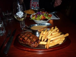 Finally we decided to share a sticky date pudding for dessert as we are both big fans. We weren’t disappointed. Warm, sticky caramel sauce over a tasty little cake. With its side of vanilla ice-cream it was a wonderful way to end the meal, especially with a cup of peppermint in hand – a nice counter to the creamy sweetness. In all it was a really enjoyable meal, any time eating food is a delight with my GG. We both left feeling very content after some quality food, excellent service and decent glass of vino to quaff. It might be one of the newer kids on the block but they do live up to their “Steak Specialist” banner so if you are in the mood for some well cooked beef then this place is right up your alley.