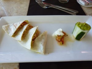 Generally then from the pool we’d head back to El Patio for lunch. It is buffet there for breakfast but al a carte for lunch (and also dinner most nights). And if you are on the gold package you get an extended menu. We began most lunches with an entrée of quesadias, which were delicious.