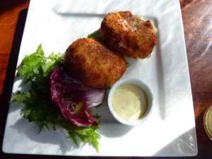And J was equally as unenthused with her selection of the salmon & crab fishcakes with pickled cucumber and salad ($32). I mean 4 pieces of lettuce, even if some is red and some is green, is still a fairly lacklustre effort at a salad. And with the actual fishcakes themselves, it was difficult to actually taste any of the salmon or crab, it was really just filler…. disappointing.