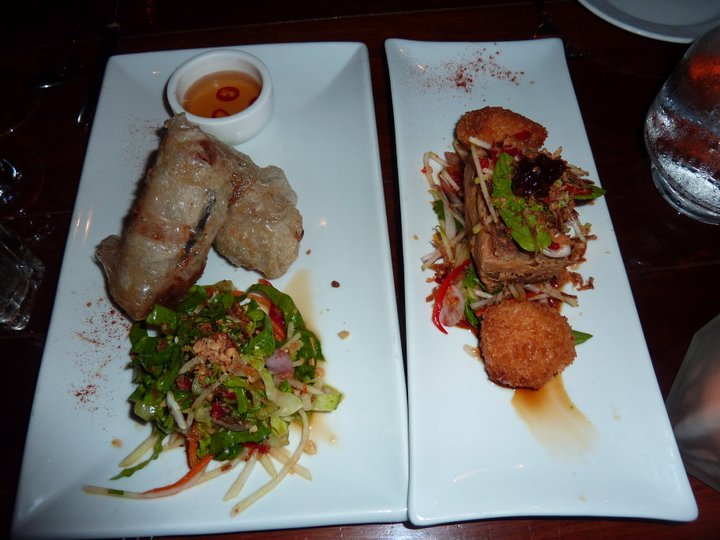 It was a fairly wintery night, but once we were inside the restaurant, it was pleasantly warm. Despite not having a booking (and probably lucky that it was a Thursday night) we were quickly seated. The waiter gave us a really thorough explanation of the night’s specials and we were sold on the fried spring rolls he outlined. A tasty mix of prawn and pork and vermicelli noodles, as well as a bunch of vegetables. There were two in the serve (which worked perfectly for us!) and it also came with an interesting salad. I really enjoyed this. The spring rolls were a generous size and the salad on the side was a nice refreshing contrast to the deep fried wonders.