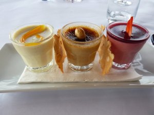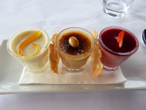 Was there room for dessert? The client insisted that while he didn’t have room that we were more than welcome to partake in something sweet. There was one option on the menu that just looked to delicious to not give it a go, so the boss and I both order that. Trio of vanilla panacotta, hazelnut brulee, berry bavarois – ($16)