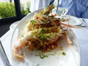 It was my first time trying scampi, which I suppose is just like a big prawn and they looked so plump and delicious, on top of a bed of cous cous with pomegranates. An interesting conversation about pomegranates ensured where the boss claimed that he didn’t eat the seeds…. I would have thought its too hard to eat around the little seeds on the little red gems and given it had been some years since he had had one, he found on this outing that they are quite easy to eat with the seeds included. The scampi was flavoured with a divine garlic butter and the combination of that with a little of the spiced cous cous was very, very good.