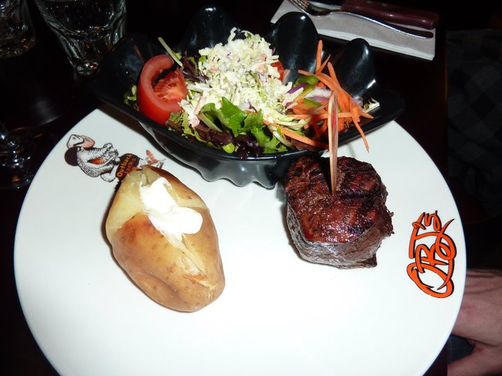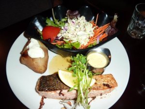 Most people around the table had gone steak, but a few gave the chicken option a go and GG’s dad was fairly impressed with the salmon dish he chose.