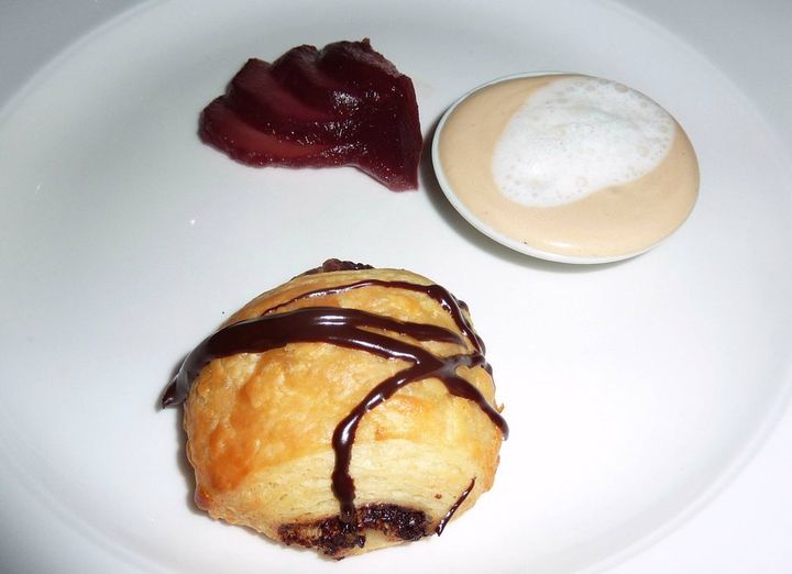 Finally, dessert was described as a Parisian Breakfast – pain au chocolat, tobacco poached pear, coffee cream, milk foam. Again, couldn’t fault presentation, something different and to be ending a dinner with something akin to breakfast can’t help but make you smile. The chocolate croissant had perfect flakey pastry, the coffee cream and milk foam was a creamy wonder and it was probably only the pears that I couldn’t get through. I found the tobacco flavour probably a little too smokey was all. The Bella Ridge Estate Port 08 was a wonderful way to round out their collection and you could argue it would work well at breakfast time I suppose 🙂