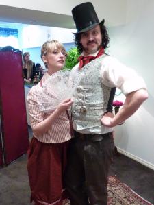 Everyone was entirely in character the whole time and after spending a few minutes taking in the delightful atmosphere in the ‘lounge’, groups were ushered into the portioned off back room for a ‘session’ with the fine doctor, Humphrey SixWivs and the delightful Mrs Isabella Forlornicate. With them the ladies spent their time learning the art of fan movements and the hidden meanings behind particular flutterings, while then fellows then learnt how to bow, doff their top hats and laugh as only a gentleman can.