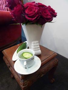 It was a recently vacated shop front that had been transformed into something from the aforementioned bygone eras. Chaise lounges, plush velour chairs, tired trays with dainty sandwiches (with no crusts of course!) and vases of beautiful red roses everywhere. As well as more than a couple of cucumbers that seemed to be placed in all available locations. http://www.facebook.com/thecucumberandrosesociety