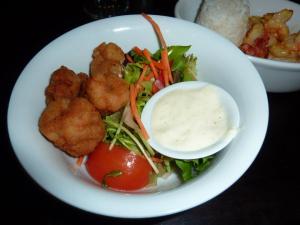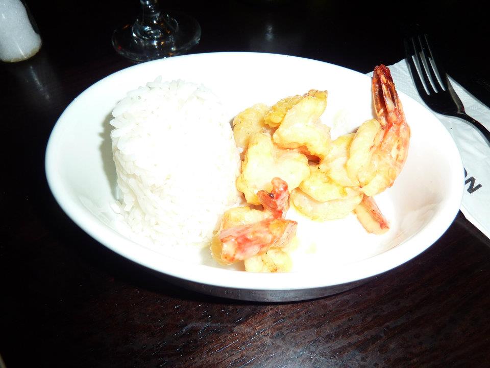 So moving on, GG and I decided on two entrees to share and went with the Bush Pepper Calamari (A generous serving of spiced calamari, flash fried and served with garlic aioli – $13.95) and also the Prawns Australiana (Sautéed prawns, tails on, smothered with creamy garlic sauce on a bed of rice, served in a mini camp oven – $17.50).