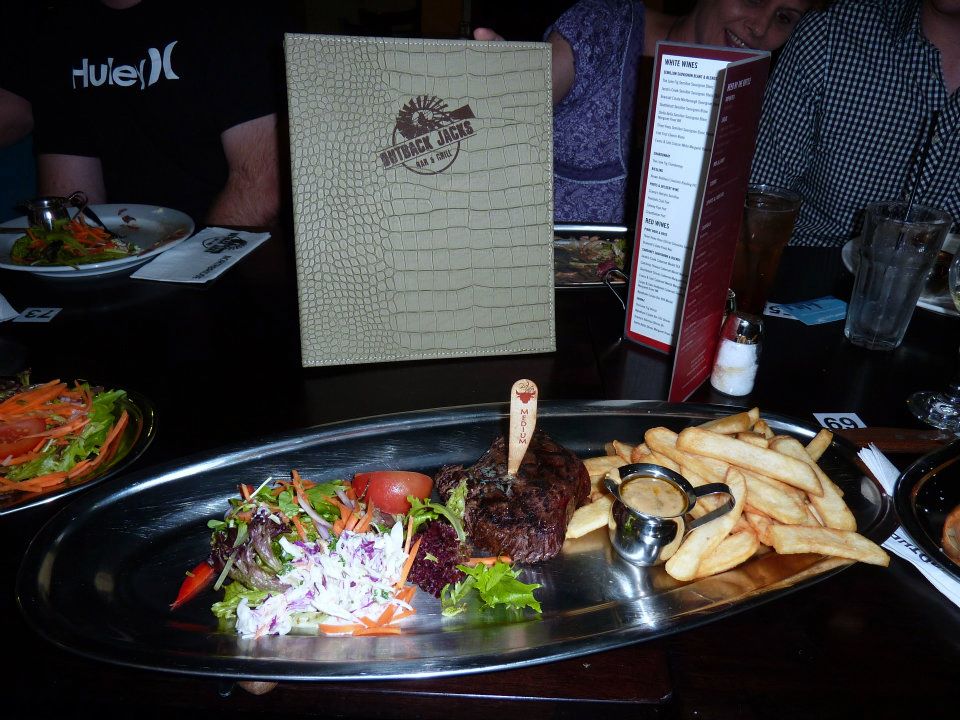 I was very lucky the other week and with thanks to www.tweetperth.com.au won a seat for myself and GG at the @tweetperth table at the re-opening night of Outback Jacks in Northbridge. I’d enjoy my last (and first) visit to OBJs in Rockingham recently (http://atomic-temporary-19383105.wpcomstaging.com/2011/07/31/outback-jacks-rockingham/). Good steaks, friendly service and perfect for families. So it was an exciting prospect to try another in their chain. We were a group of 20 – happy, smiling competition winners – my first Twitter comp win 🙂