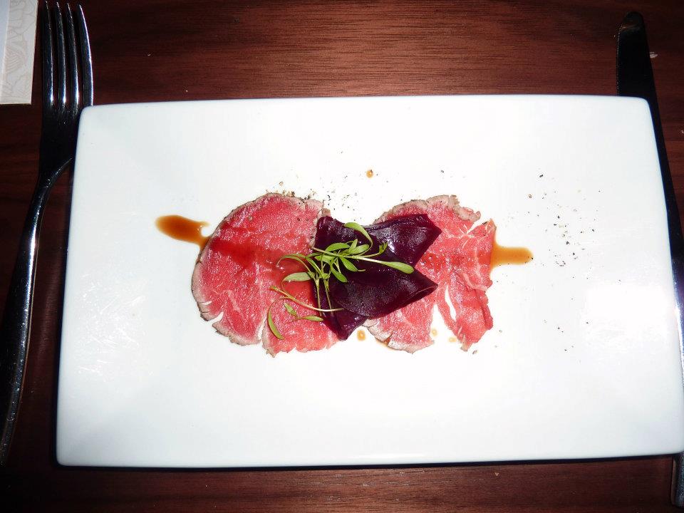 Next up it was time to switch to red meat and I was pleased that it was a more dainty serving. Delicate slithers of beef carpaccio, topped with beetroot (two dishes with beetroot – bonus marks right there) and a delectable Pedro Xeminez sauce. It might not have been a big serve but I seriously savoured every mouthful.