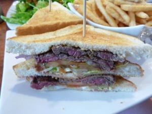 Now I know club sandwiches have a reputation for bring a bit of a tower but I was impressed when the same could be said of my steak sandwich. A double decker alright and there was just no way I could eat it without wearing it.