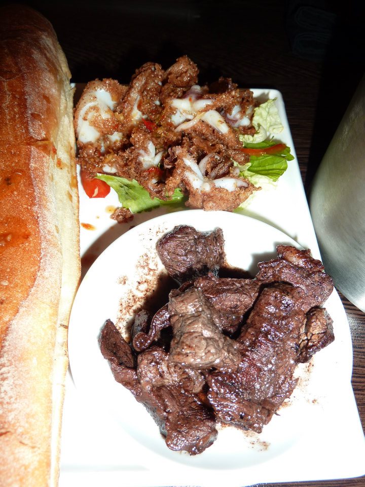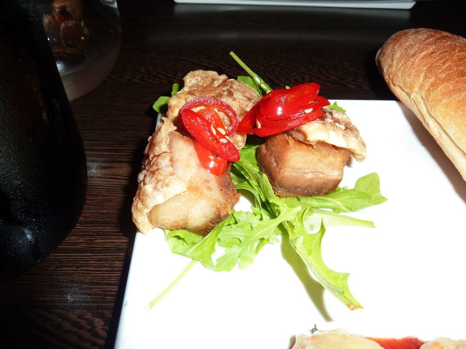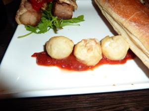 Goat’s cheese pearls…. hmmm they weren’t the prettiest but me oh my! Deep fried little wonders – the indulgently soft and a little salty cheese with the spicey tomato sauce underneath. Very nice! It was so on as to who would get the third one…