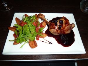 So then it was time for the mains and I was intriguied by the sound of the duck dish – Duck confit with gin and blueberry jus, crisp potato rocket salad ($36). It was a generous serve of duck, which had been perfectly cooked. I didn’t really like the taste of the sauce though. The blueberries gave it a nice sweetness but there was something about the sauce as a whole that I just didn’t like, could have been the gin. The salad was nice and refreshing though, with its potato wedges decoratively included. In all… in my year of the duck, this dish wasn’t going to be making it to the top.
