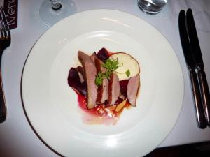 And after the lobster came a Tea Smoked Duck Breast, Marinated Beetroot and Organic Feta Whip served with a Ata Rangi Pinot Noir 2009 from Wairarapa in New Zealand. It will unlikley come as a surprise to anyone who has read a few of my posts this year that I have a lot of time for duck. The combination of flavours in this dish worked a treat. The sweetness of the beetroot and the smoothness of the feta cheese with the pink duck breast it was one favourite courses.