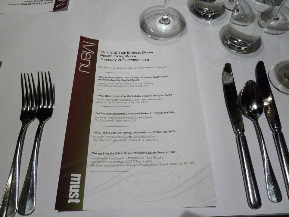 To round out what was an epic week in October, the third massive dinner I went to was the Must 10th Birthday Dinner. I am on their mailing list so saw details of this one on their event listings. Sounded delightful. They always have some impressive sounding dinners and with the exception of a Christmas Party I’d never been there for a meal. So I jumped at this opportuntity…. and GG is an easy sell on a delicious dinner out. So tickets were booked and the calendar was marked.