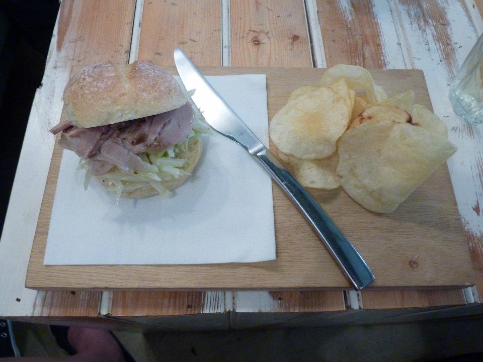 My friend’s lamb sandwich was said to be tasty, but I thought it looked a little sad all alone on its wooden board….. perhaps its needed some chips on the side!
