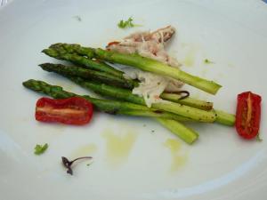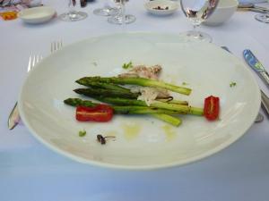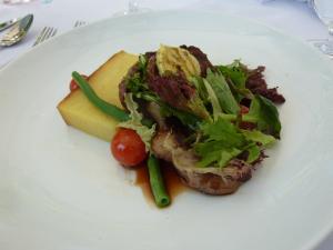 I began with the Grilled asparagus with crab rillette, salad of heirloom cherry tomatoes. The asparagus had been well prepared, still wonderfully crunchy and well matched with the sweetness of the tomatos, and the crab itself was fine, however it did have a slightly stronger seafood flavour that I was hoping for, but still not too bad.