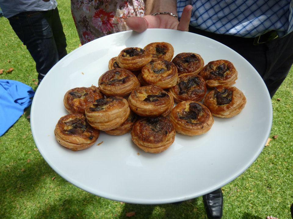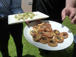 Then the canapés began. The first one I sampled was a dainty mushroom tart – flakey pastry with a sort of cheesey mushroom filling. Quite tasty… would have to keep my eye out for more of those.