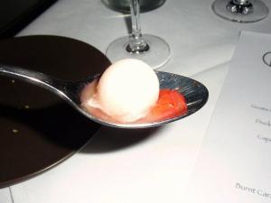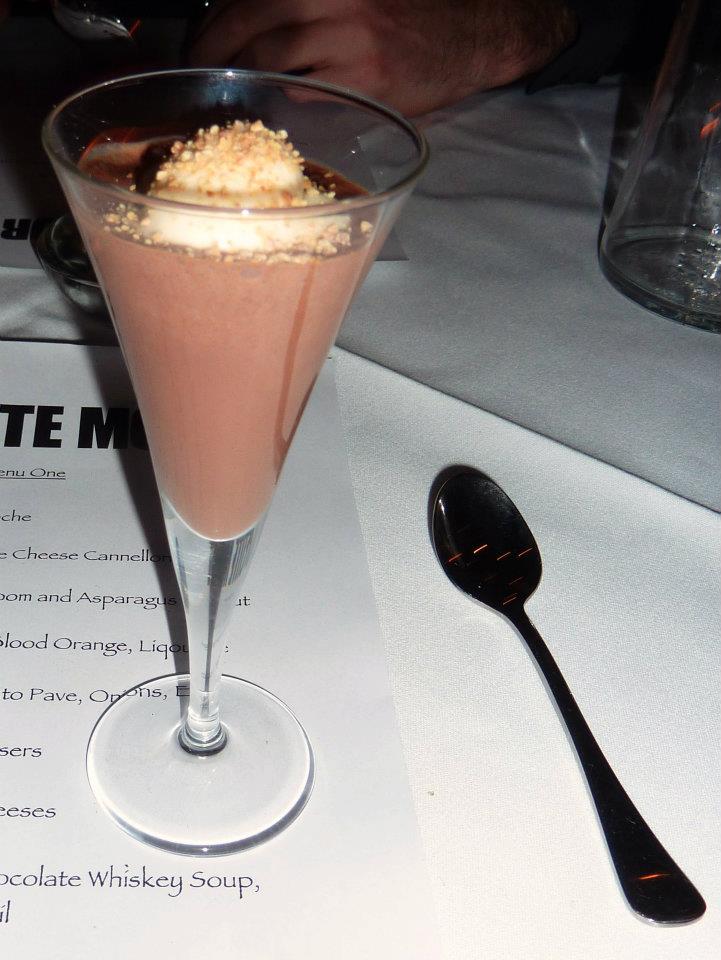 The second surprise course for the evening was a pre-dessert. Served in a delicate glass the amaretto chocolate milk was entirely divine. Honestly….. if it came in a 2L bottle down at Coles I would corner the market.