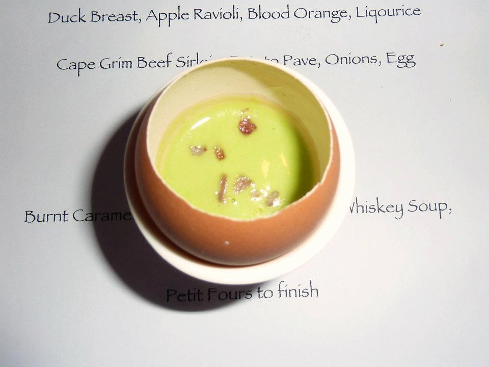 A surprise course arrived next – creatively presented in an egg shell. A tribute to Dr Seuss in part – a little bit green eggs and ham. Filling the egg was a petite mouthful of pea and ham soup. I had some concerns about slicing my mouth open on the egg shell, but hey I like to live dangerously and I also like soup, so I boldly indulged in the mouthful and was glad I did – another taste sensation.