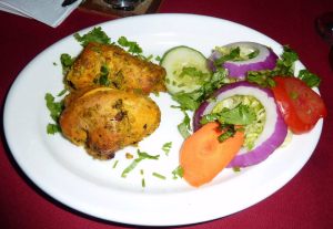 I gave the friendly waitress our vouchers on arrival and she confirmed that with our two vouchers we could choose any four entrees and mains off the menus, then we just needed to order any rice or breads separately. We were very appreciative of the bottle of water brought to our table and on request were bought some wine glasses – another plus – BYO wine and beer! So we were all tasked with choosing an entrée and a main with a very to sharing them all. It was quite an extensive menu and split into vegetarian and non-vegetarian which made things easier and a helpful description of each item was provided. So we nibbled on the pappadums we’d been given and had a flick through the menu.