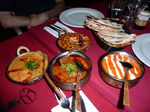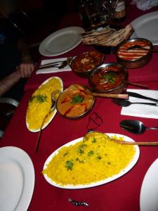 On working our way through the starters, our primary concern was how in the world we would get through our mains, which were still to come. We had ordered a butter chicken, beef rogan josh, prawn curry and also a vegetable curry. Along with that we thought 2 serves of saffron rice and 4 plain naan should fill the void. Well this had been our thoughts before we’d had our entrees. A serious dent had already been put in that void….. so there were some concerns. But they were presented and it was quite the impressive spread with all the dishes in front of us.