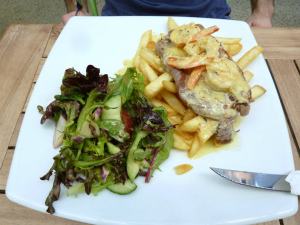 Across the table GG ordered the surf and turf (huge shock there I know :)). He had a similarly generous serve of chips and salad, while the steak was perhaps a little on the skinny side from where I was sitting. The prawns looked nice though and there was plenty of creamy garlic sauce to dip them in. He enjoyed his meal. Agreed that the steak wasn’t one of the better ones he had had, but said that it was still decent, as his empty plate testified.