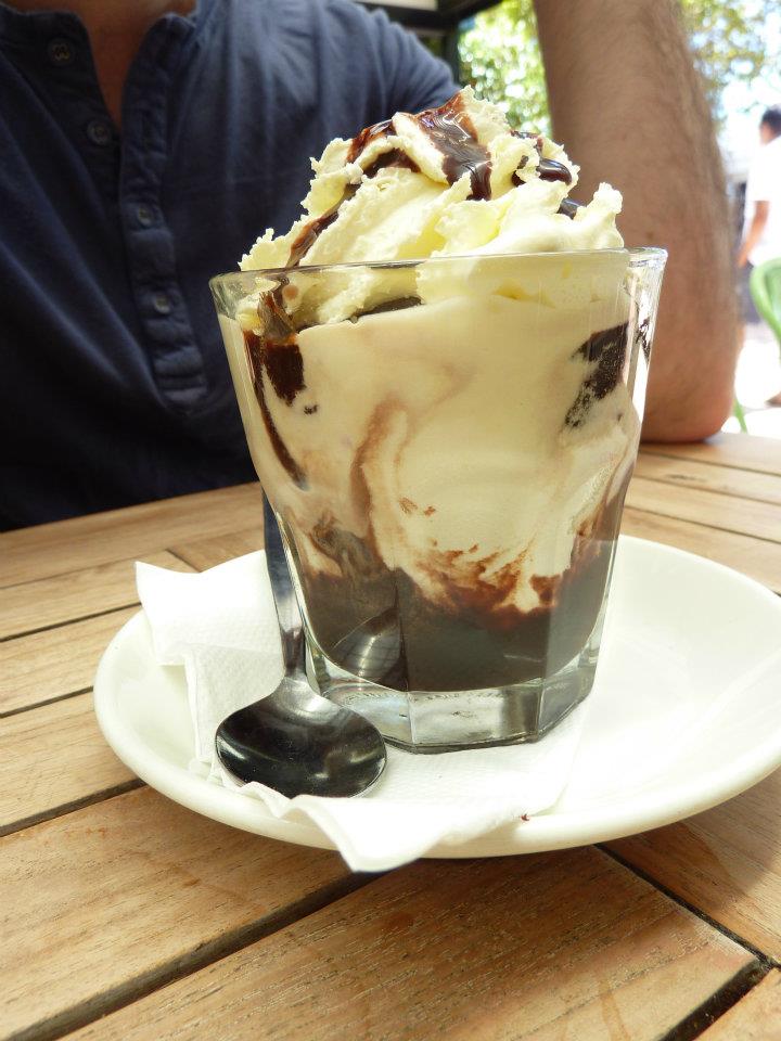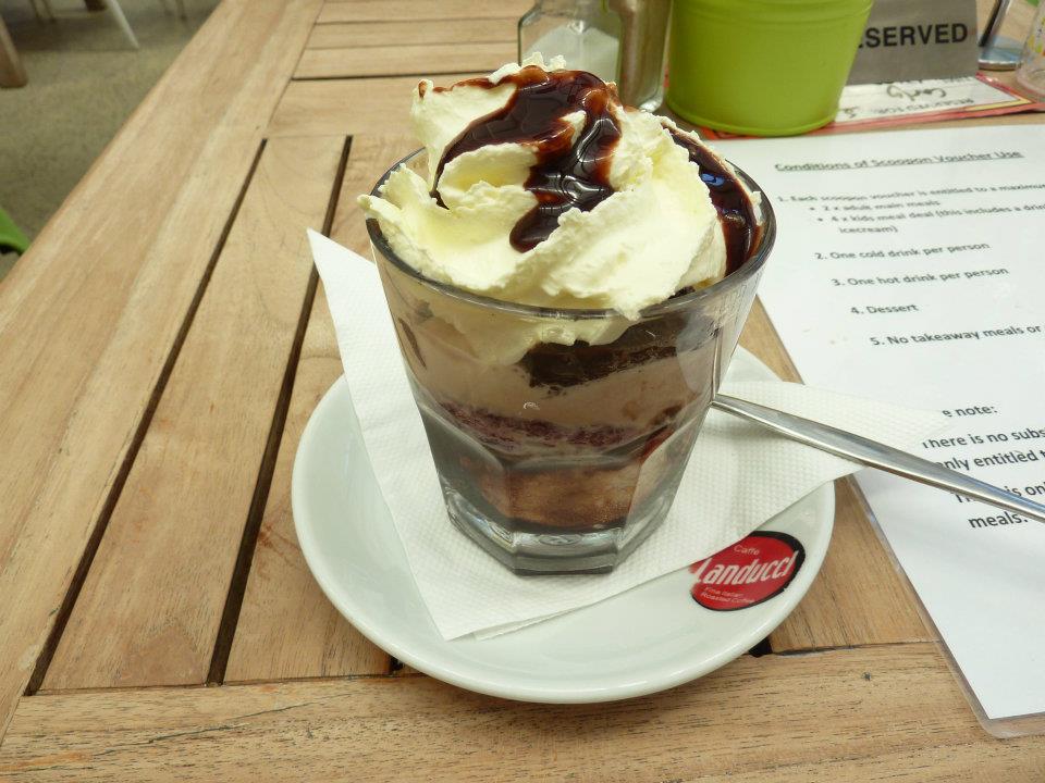 Then it was time for dessert. Neither of us felt like a hot drink, so we just went with the Warm Brownie Sundae. When it arrived it wasn’t quite how I imagined it would be served. I thought the brownie would be more cakey, but this was more like a denser slice – with little cubes of it throughout the sundae. Then there was oodles of cream and ice cream and super sweet berry coulis. Then at the bottom was a generous pour of chocolate syrup. Probably not much favourite dessert of all time, but in terms of a sugar hit, I was well prepared to be bouncing off the walls after all that syrupy goodness.