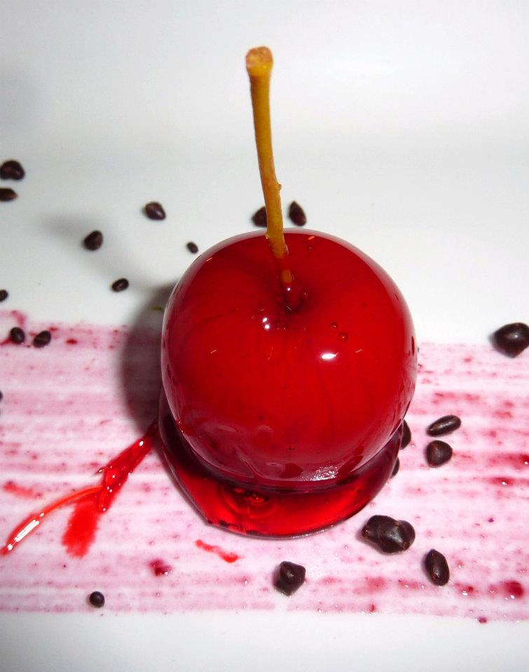 Now I cannot tell you the last time I had a toffee apple. They used to be something I would always get when I went to the Royal Show, along with a bag of fairy floss, but some how the novelty of sticky fruit wore off as I grew older……. but this looked so precious on the plate! A perfect miniature, complete with the right shade of red for the toffee. I tried to take a delicate bite but ended up with the whole thing in my mouth. Needless to say, it was another example of me trying to be lady like where it could be argued that I failed as I battled with the sticky toffee. The final item on the plate was the Chocolate liqueur crème brulee.
