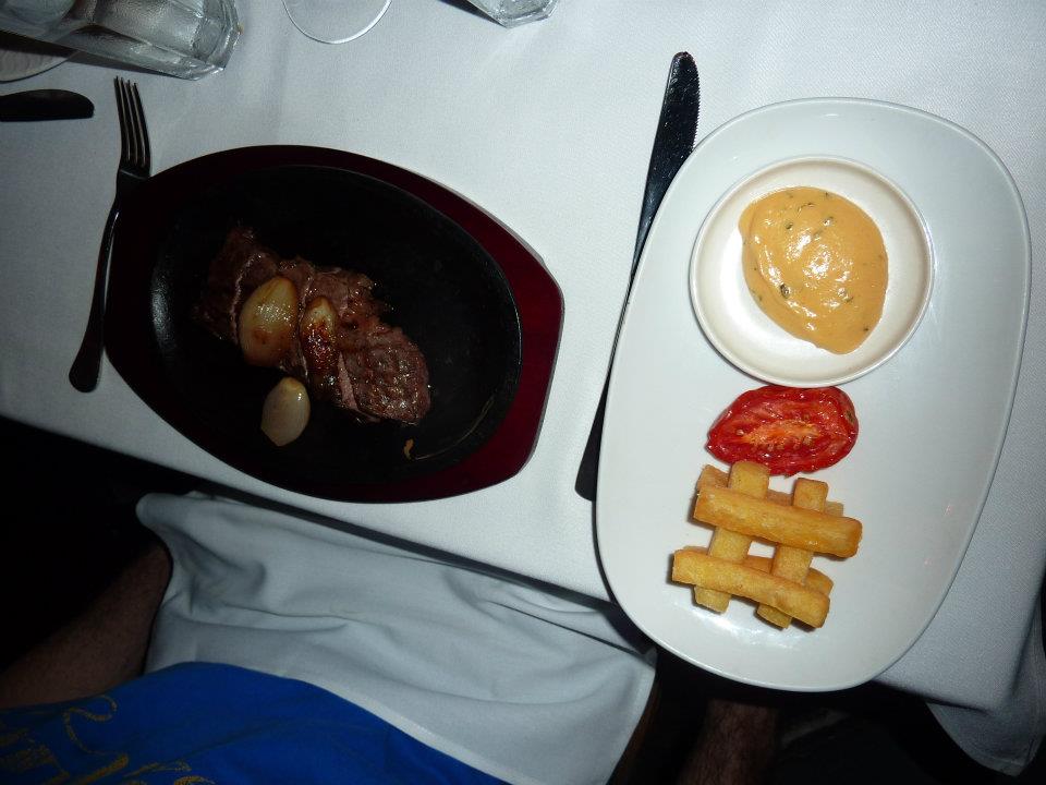 We continued to sip on our vinos while we waited for our mains to arrive. It didn’t really take too long. Mrs M and GG both ordered the 300g Black Angus Skirt Steak, which came with a side serve of frites and bernaise sauce. Despite the small number of chips I snagged one of GG’s and I have to say that with a dunk in the bernaise sauce they were pretty fantastic!