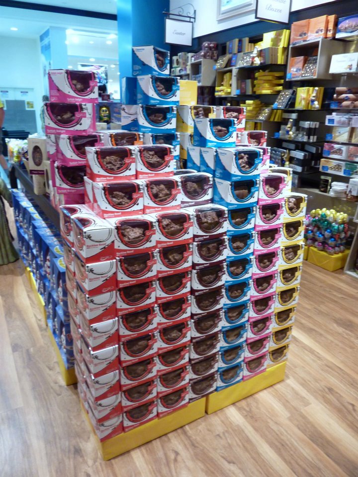 Sizes ranged from super cute chocolate bunny lollypops to the more ambitious 3.5kg Golden Egg. Now I’m a big chocolate fan, don’t get me wrong, but even I was wondering who was buying eggs this size?? So the question was asked and we were told that on many occasions that families who have larger Easter celebrations would buy one to be shared among the children, which I thought was a nice idea. Or sometimes churches buy them to be shared among parishioners on Easter Sunday morning. So there is a market for these gigantic chocolate treats as I found out.