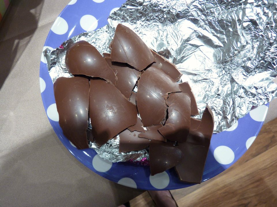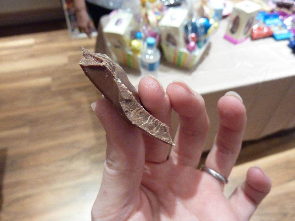 I was pretty impressed to have made it through the top 10 and was just about maxed out on chocolate at this stage, but for our final task we were given a chocolate egg each and told to eat it like we normally would. This was to assess our Easter egg profile. I folded the foil back over mine and proceeded to lean my hand down on it and smash it bits.