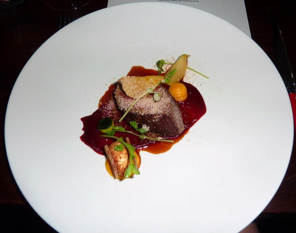 We’d enjoyed a scallop earlier but it was time for another salute to seafood with Trout and Chilli Squid (2011 Paul Nelson Fume Blanc) The plate looked fairly similar to the one we’d had at new years (http://atomic-temporary-19383105.wpcomstaging.com/2012/01/11/red-cabbage-food-and-wine/), only the trout had replaced pork belly. I just love how creative they are with cucumber. They must have some very cool cutters in the kitchen 🙂 The fish was perfectly prepared and I enjoyed how it was dusted in a light spicy coating, then there was the refreshing cucumber. Much to love about this dish too! Plus visually the team in the kitchen at Red Cabbage do plate up beautifully. It’s really art on a plate! And this isn’t just me getting gushy, because we’d tried 4 fabulous wines up to this point 🙂