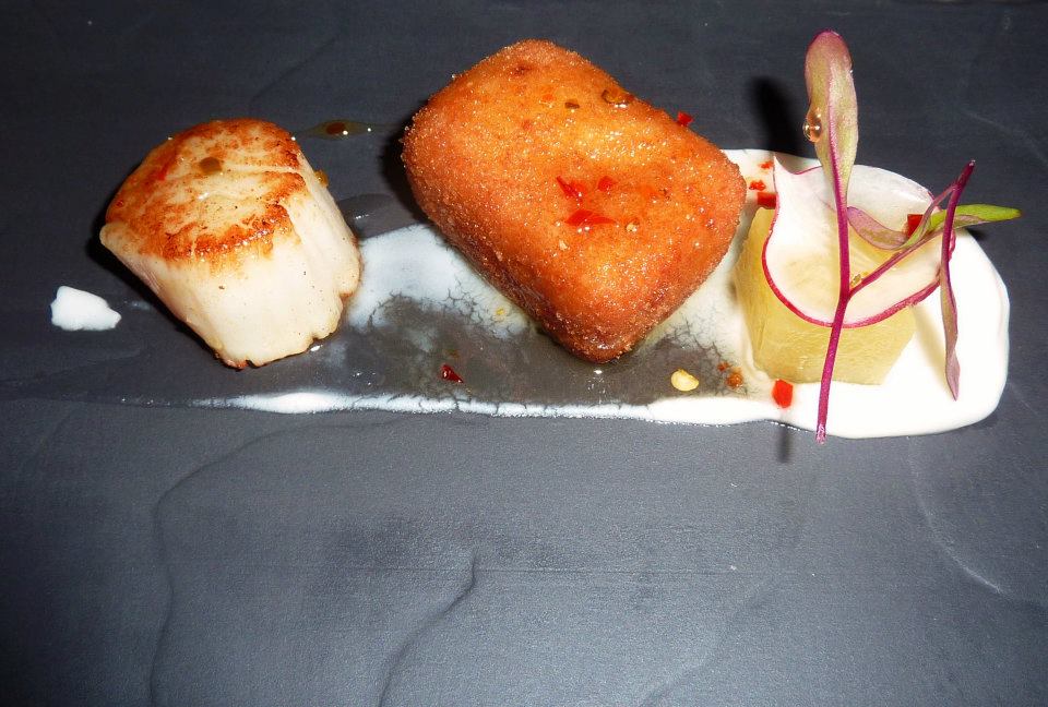 Up next was Scallop, pork and pineapple (2010 Balthasar Ress Hattenheimer Schutzenhaud Kabinett Rieselin). I couldn’t wait to try the combination of those three flavours together, especially with a little of the coconut mousse dramatically smeared beneath the three delicatable morsels. It was as divine as I had imagined. The carefully prepared cube of pork just melted in your mouth and the pineapple served to further enhance the sweetness of the plump scallop. Just a sensational course!