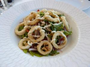 So we shared a Calamari Salad, calamari fritti, bean shoots, red onion, capsicum, coriander, mint, sprouts, aioli ($28.00). It was really delicious. Tender squid rings in a light, crispy batter on top of fresh, crunchy greens, packed with the punch of flavour from the mint and coriander. A winner of a salad, no doubt about it.